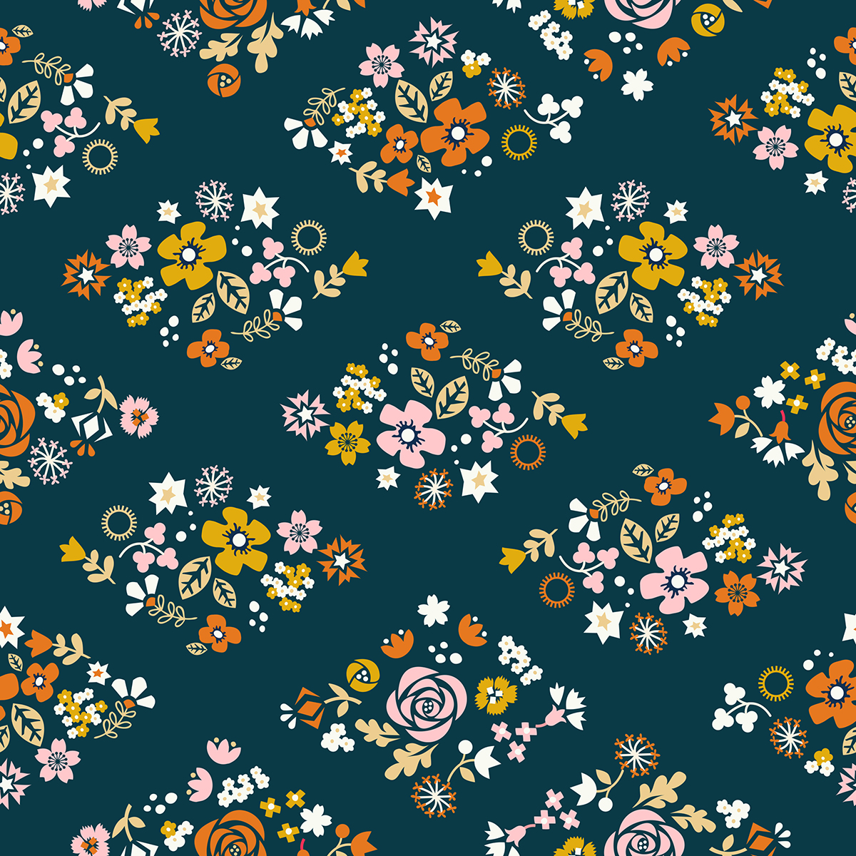 Koi Pond by Rashida Coleman-Hale for Ruby Star Society. Rashida revisited some of the art from early in her design career but recreated it in new colours with her more experienced eye. She wanted the colour palette of this collection to feel like a sunny day at a lake, filled with warm peaches, yellows, toffees and pops of deeper teal.