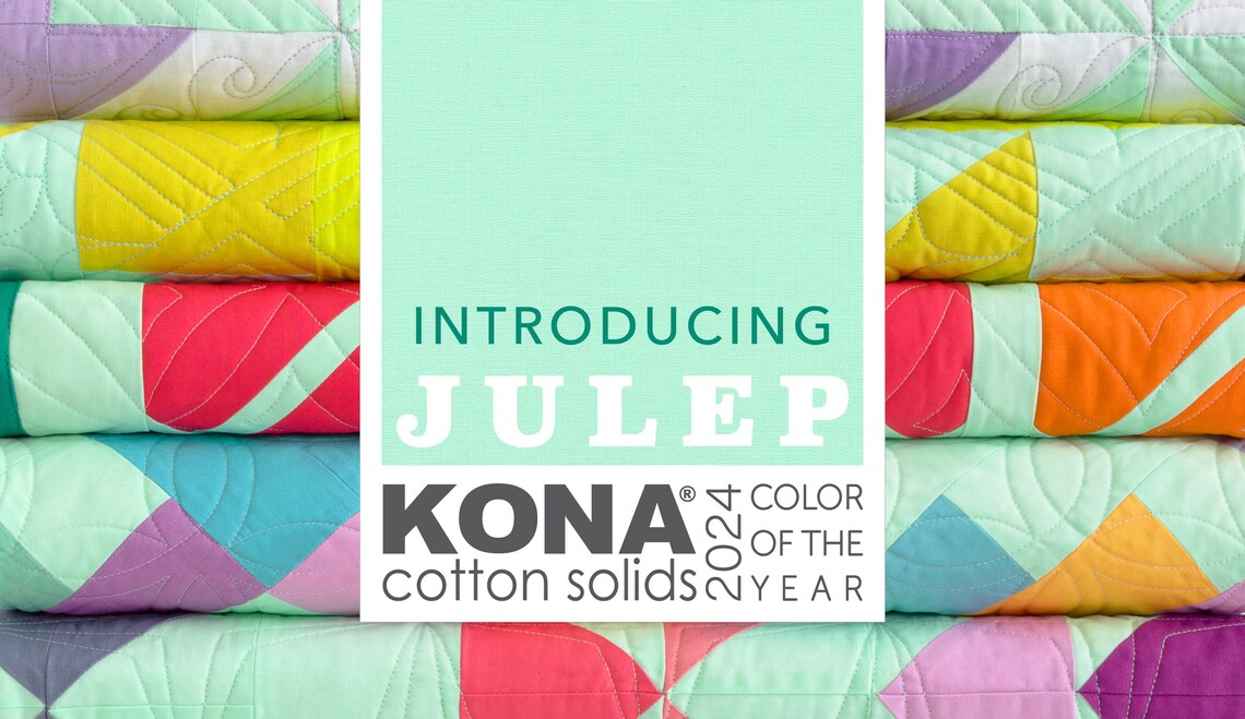 Introducing Julep, Kona Solids’ 2024 Colour of the Year! – From the delightful Kona Cotton Solids range by Robert Kaufman. It is 100% cotton quilting weight fabric.