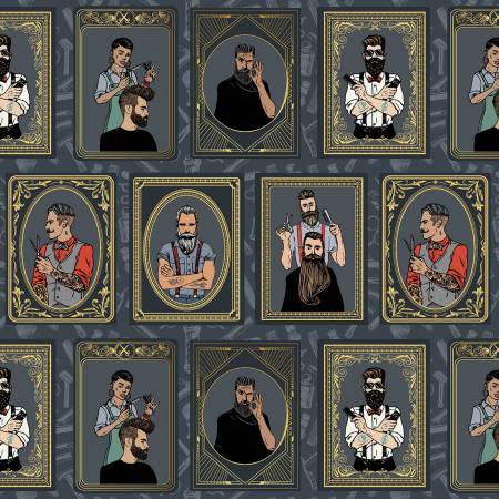 The Licensed to Carry Collection by Dear Stella Fabrics Features Barbers, Mustaches, and other barbering apparel.