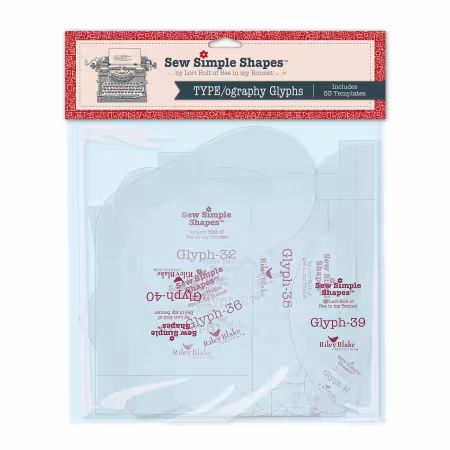 Lori Holt of Bee in my Bonnet has created 53 TYPE/ography Glyph templates for an endless variety of designs using your applique method of choice. They are used with the Say-It Sew Along. Made of sturdy plastic, they have center marks and are see-through for fussy cutting.