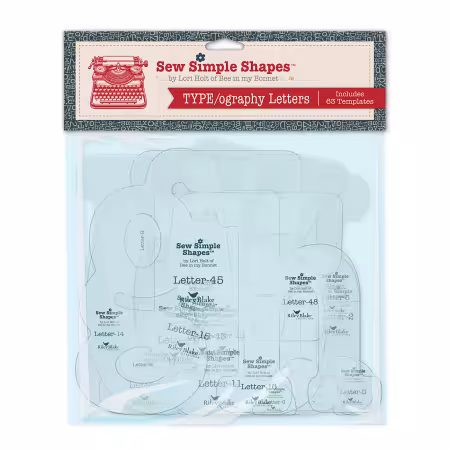 Lori Holt of Bee in my Bonnet has created 63 TYPE/ography Letter templates for an endless variety of designs using your applique method of choice. They are used with the Say-It Sew Along. Made of sturdy plastic, they have center marks and are see-through for fussy cutting.