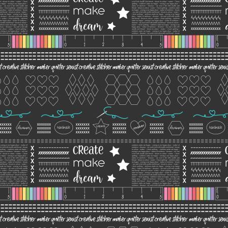 Make by Kristy Lea of Quiet Play for Riley Blake Designs is great for quilting, apparel and home décor. This print features creative, maker-themed text and icons.