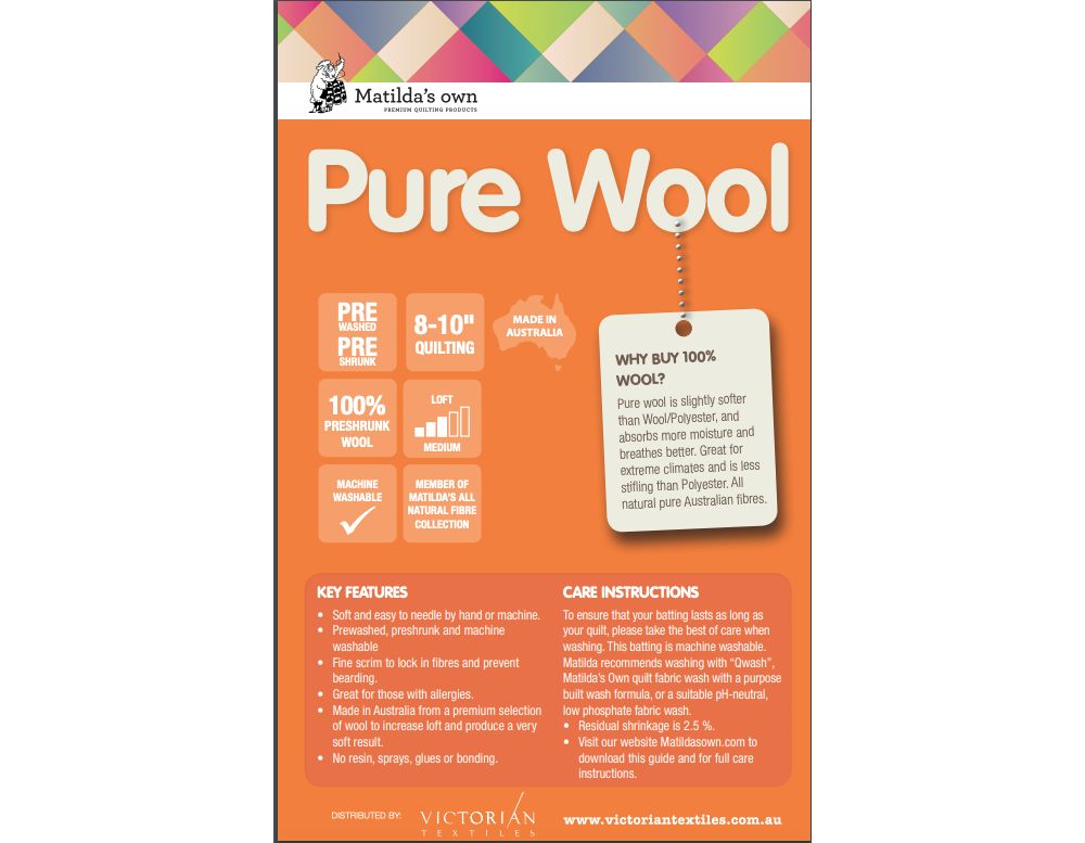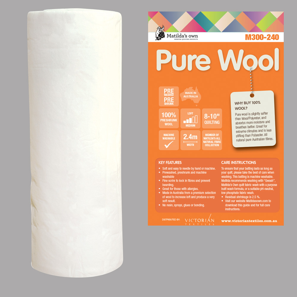 Medium Loft. Soft and easy to needle by hand or machine. Fine scrim to lock in fibres and prevent bearding. Great for those with allergies. Made in Australia from a premium selection of wool to increase loft and produce a very soft result. No resin, sprays or glues.