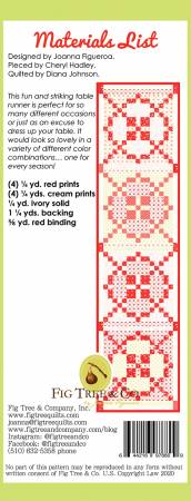 This fun and striking table runner is perfect for so many different occasions or just as an excuse to dress up your table. It would look so lovely in a variety of different colour combinations… one for every season! All you need is (4) 1/4 yds & a 1/4 yd. background! Size is 17in x 72in.
