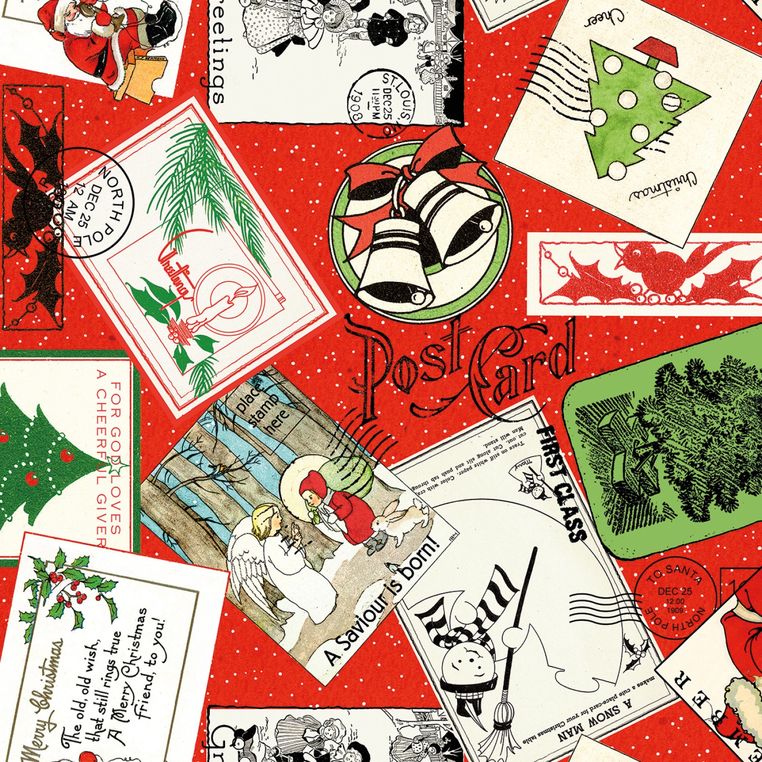 Nicholas by J Wecker Frisch for Riley Blake. A classic Christmas collection inspired by ‘the cheerful gift giver’. The collection is filled with postage stamps, snowflakes and text, all in the perfect colour palette for any Christmas project!