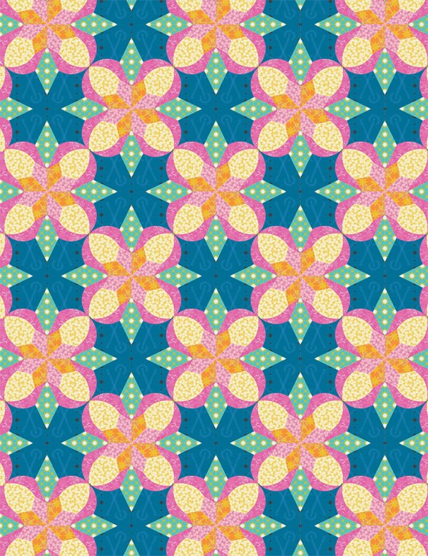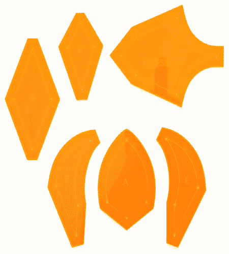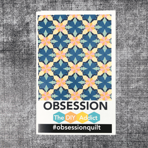 The Obsession quilt is designed by Karen of the DIY Addict and can be english paper pieced or hand pieced. The pack contains the pattern, complete set of 1400 paper pieces, and complete set of 6 tinted acrylic templates with 3/8in seam allowance. Finished size: 62.5 in x 62.5 in without a border.
