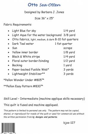 “Otto Sea Otter” is a whimsical wall quilt of a sea otter. It is fused and machine appliqued and the size is 36″ x 25″.