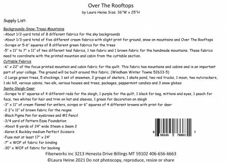 Over The Rooftops Collage Pattern by Laura Heine has arrived just in time for Christmas, with Santa raining gifts down on the town below. Pattern includes color step-by-step instructions to complete this quilt. Finished size 36in x 25in. Templates included.