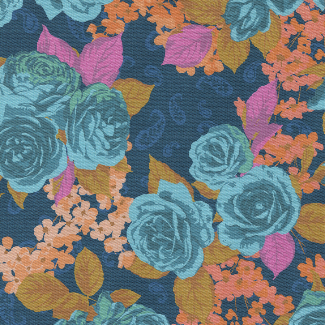 Paisley Rose by Crystal Manning for Moda Fabrics. Blooming roses add a dash of romance and ornate paisleys create a bohemian vibe. The luscious colours and vibrant patterns of Paisley Rose will add boho-style to all your projects!