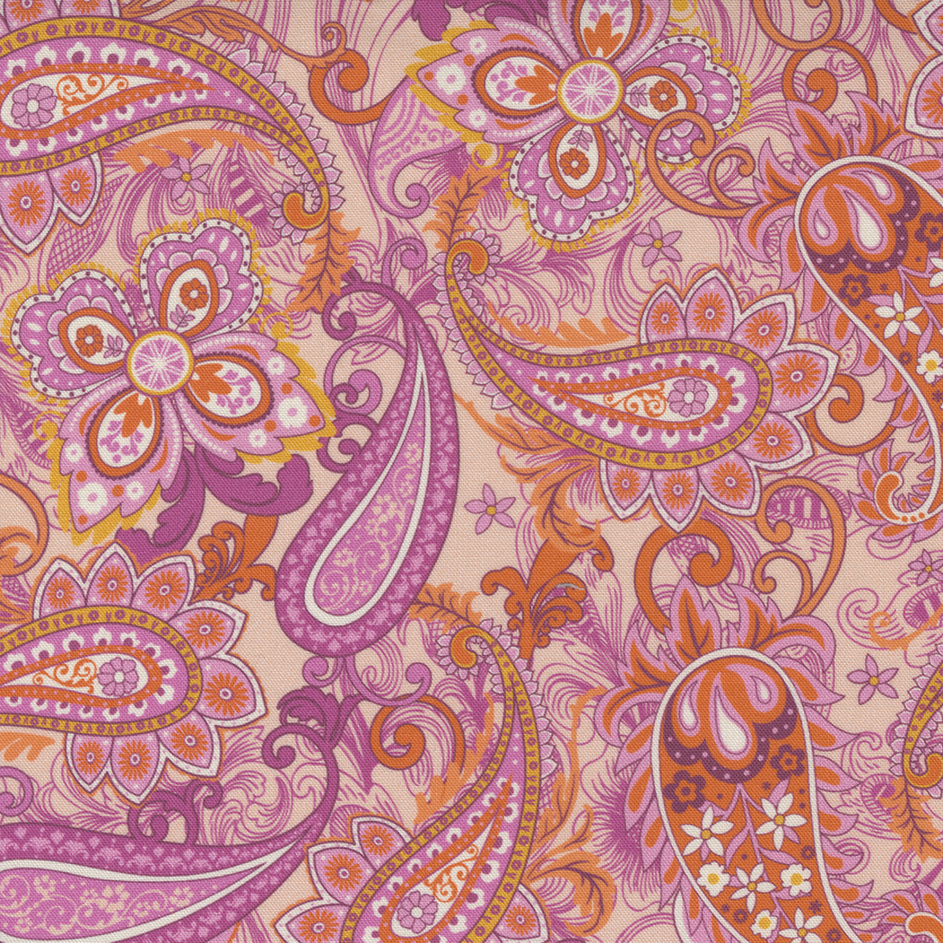 Paisley Rose by Crystal Manning for Moda Fabrics. Blooming roses add a dash of romance and ornate paisleys create a bohemian vibe. The luscious colours and vibrant patterns of Paisley Rose will add boho-style to all your projects!