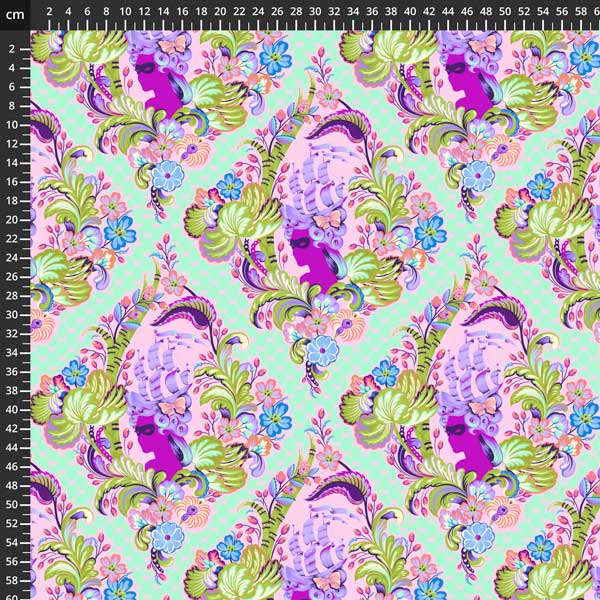 Parisville Deja Vu by Tula Pink for FreeSpirit Fabrics. Parisville was the first collection Tula Pink originally released with FreeSpirit back in 2010. Tula has now breathed new life into her collection and re-released it, as her goal is to make her old prints more accessible for new makers. Based on the story of Marie Antoinette, using a dreamy colour palette of bright pastels and rich citrus colours she describes her collection ‘like frosting, it’s sweet, decadent and entirely indulgent’.