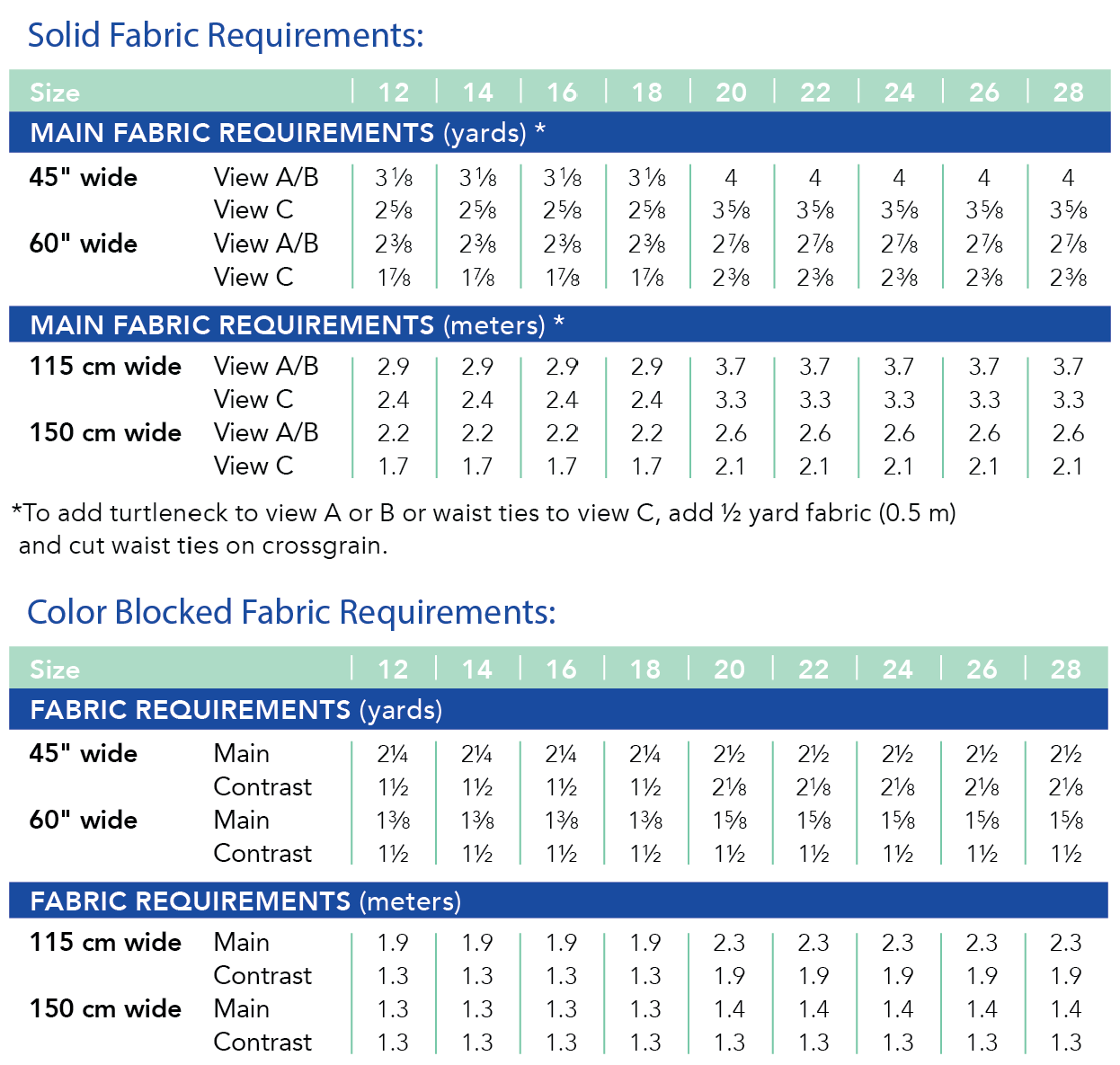 RECOMMENDED FABRIC: Mid-weight knit fabric such as cotton/lycra, poly/lycra, rayon jersey, ITY, or lightweight ponte, with at least 20% crosswise stretch.