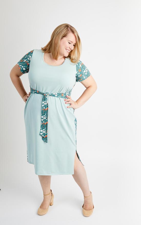 Take on your day with the Pembroke Dress & Tunic! This iconic T-shirt dress, in midi or tunic length, is designed for curves with an optional waist tie and modern split hem detail. Choose from three neckline options (scoop, jewel, or turtleneck) and either cuffed or hemmed sleeves. Whether made up in a lightweight ponte or flirty floral jersey, there’s nothing basic about this wardrobe essential!