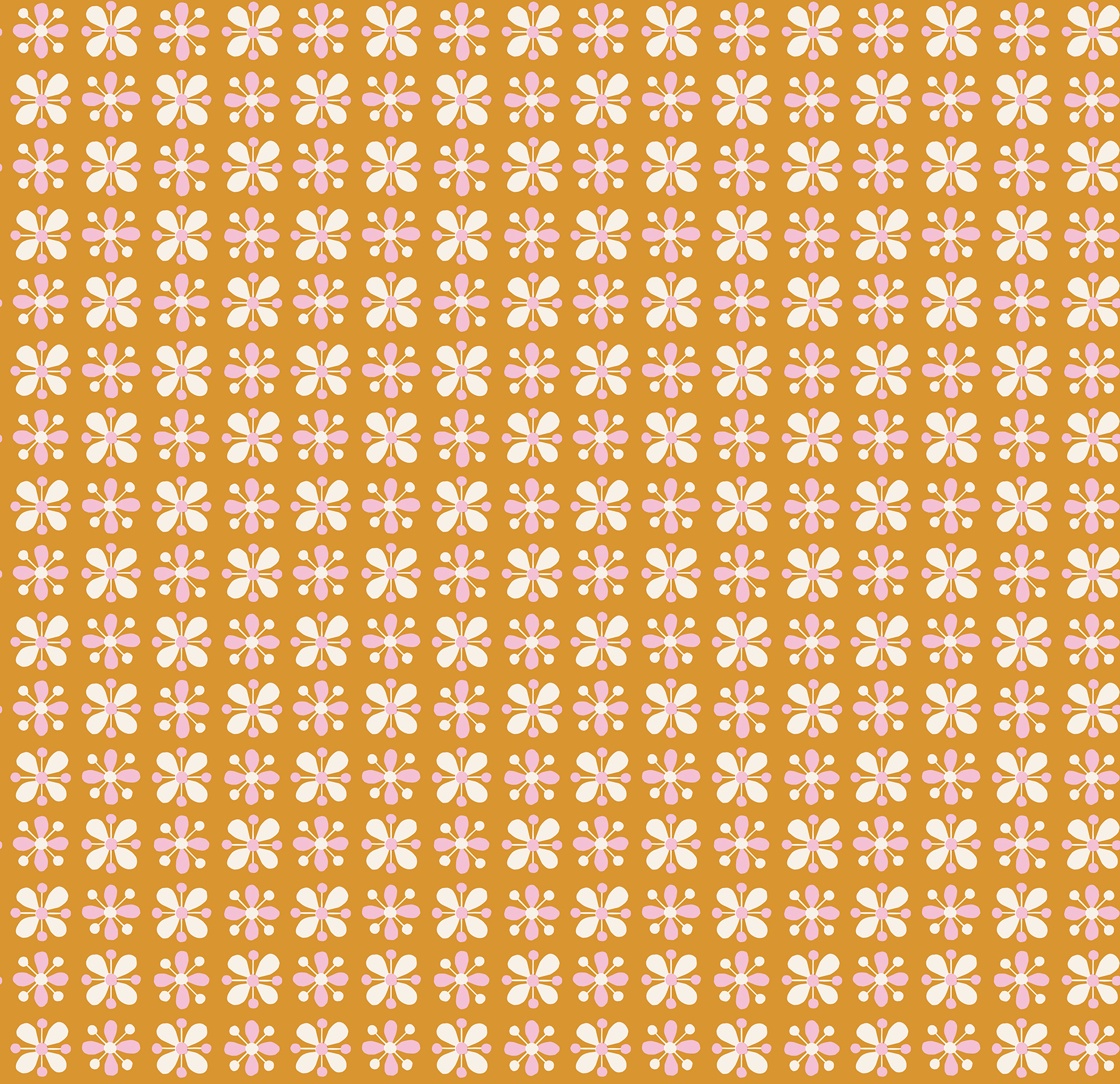 Kim Kight was inspired by a trip to the International Folk Art museum in Santa Fe. Petunia has a distinctly folk-art vibe with florals arranged in a fixed geometric layout and other designs arranged more loosely with motifs tossed on the background. The colour pallet is light an fresh like a sunny day.