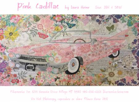 Pink Cadillac Collage Pattern by Laura Heine. Full size pattern and color instructions included.