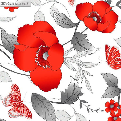 Poppies in bloom are always spectacular. Now they can be in bloom forever with the Poppy Promenade collection by Kanvas Studio for Benartex. This collection has bold colours with pearlescent highlights.  100% cotton quilting weight fabric.