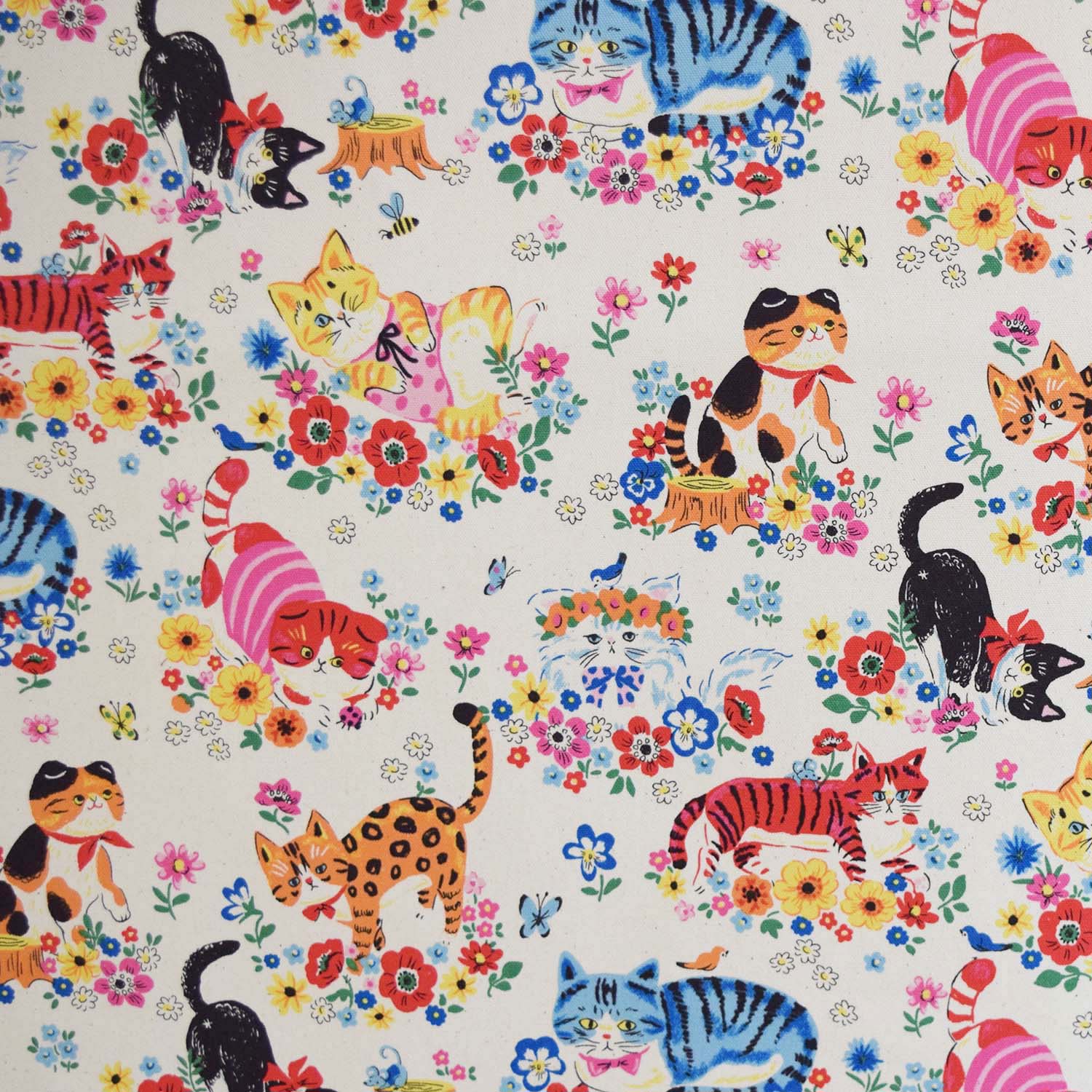 Calling all cat lovers! This 100% cotton Oxford fabric showcases adorable cats in a vibrant flower garden—perfect for anyone who loves bold, eye-catching designs.