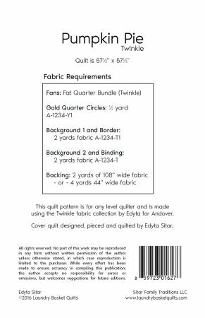 • Pumpkin Pie – Twinkle is for any level quilter! Quilt features the Twinkle fabric collection designed by Edyta Sitar for Andover.
