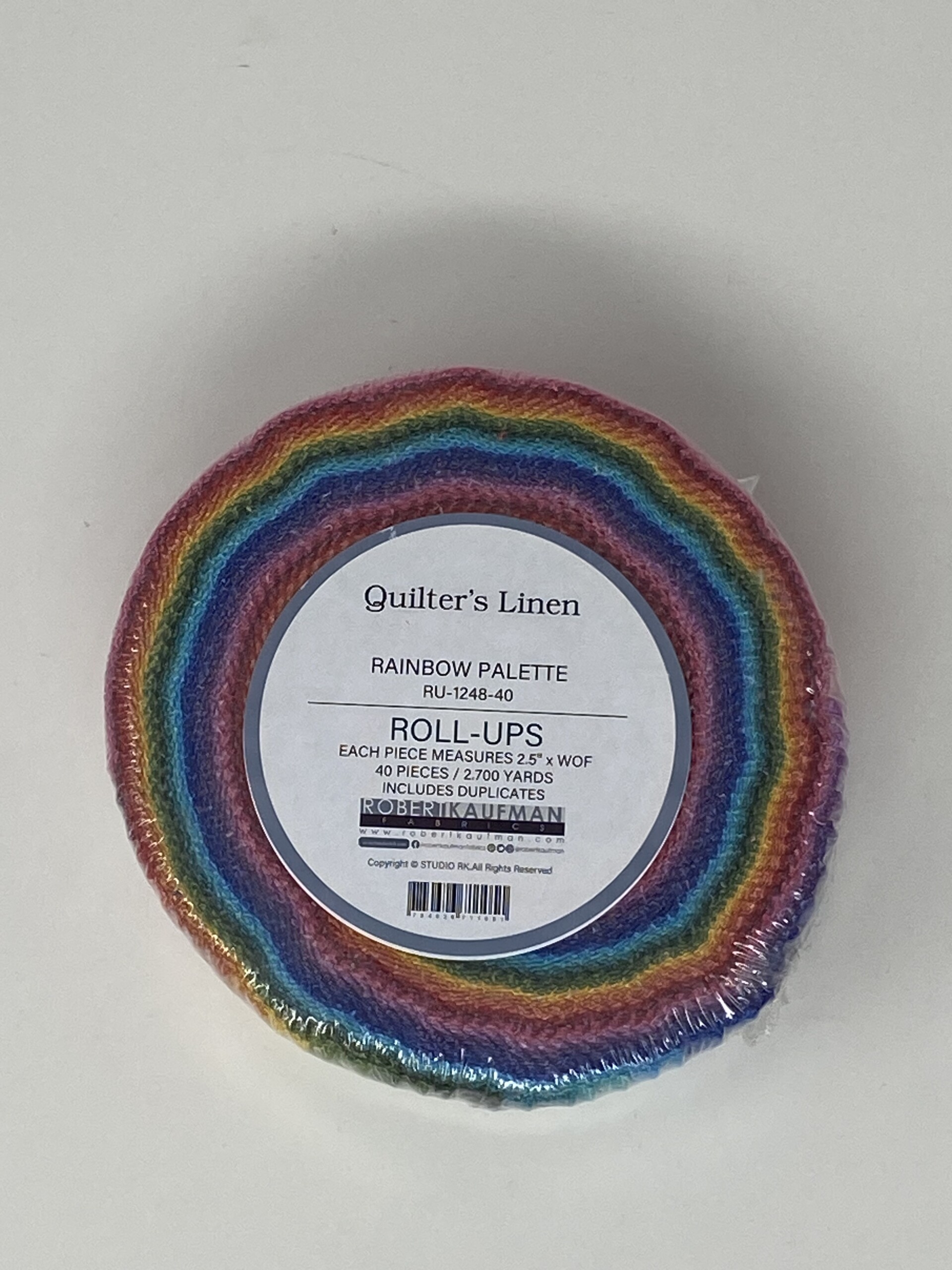 Jelly Roll containing the Quilter’s Linen Rainbow Palette by Studio RK for Robert Kaufman.