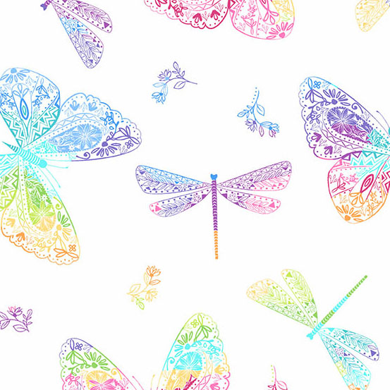 Sew in technicolor with Rainbow Garden, the newest collection from Andover fabrics – rainbow butterflies, bugs and floarls on a striking white or black background.