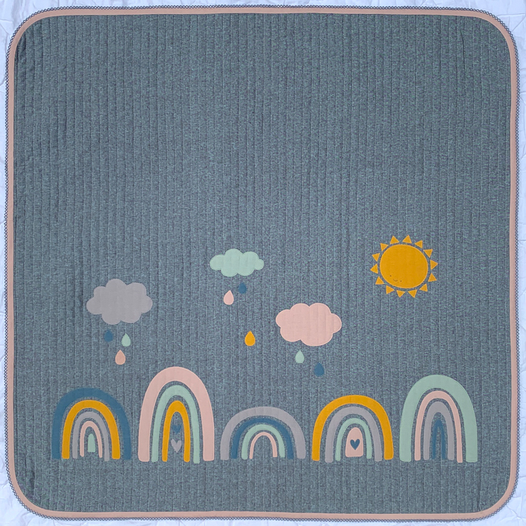 Raynie’s Rainbows is the perfect quick gift – just grab a quick cut kit and you are ready to go! This quilt can easily be made in 2 days or less! There is an added blue cloud applique piece that can be used as a quilt label or to decorate a matching item.