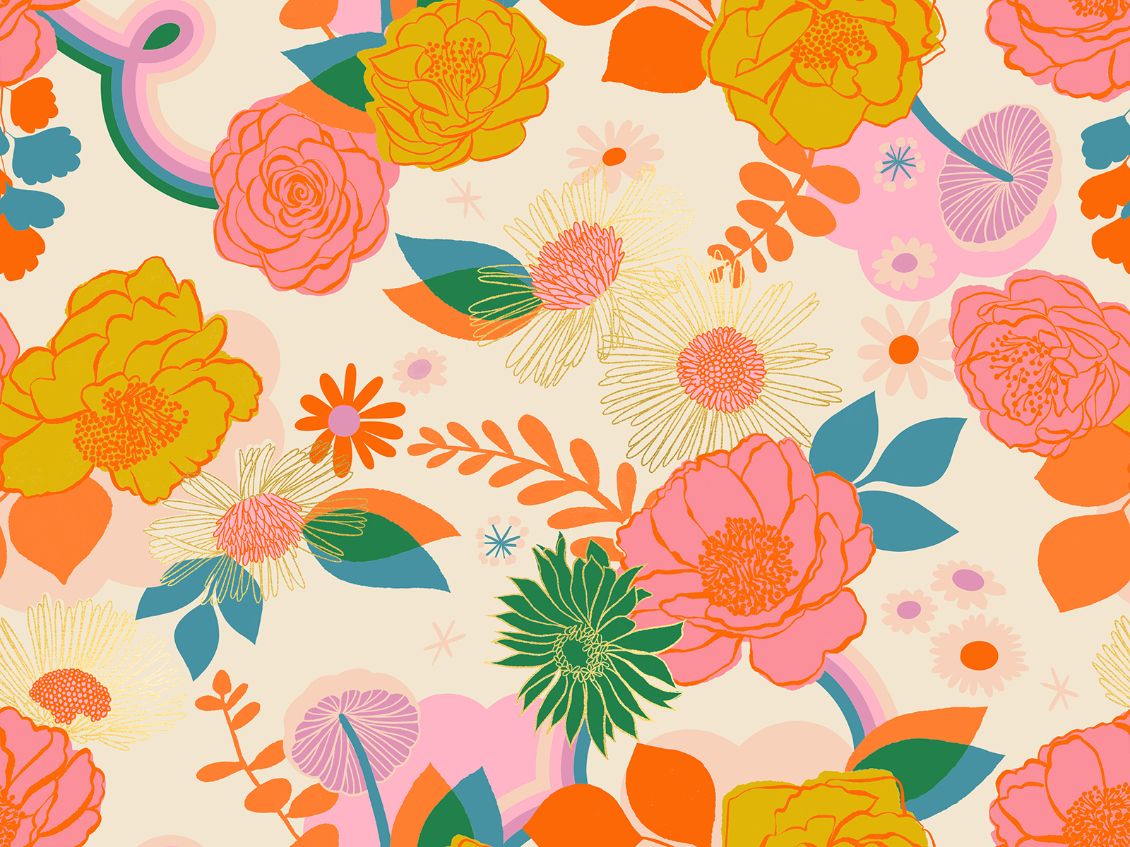 Melody Miller has designed Reverie for Ruby Star Society and Moda Fabrics. The Reverie collection was inspired by a Summer afternoon where Melody day dreamed while watching the clouds, surrounded by the fresh smell of flowers. This collection, in Melody’s signature colour palette of cool aquas, gentle corals and splashes of lipstick pink features flowers, clouds, rainbows and leopards.