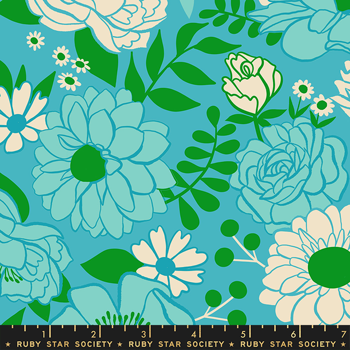 Rise and Shine collection designed by Melody Miller for Ruby Star Society. The Rise and Shine fabric collection is inspired by her Flower land collection, and continues the trend of summery prints in pink, blues and yellows.