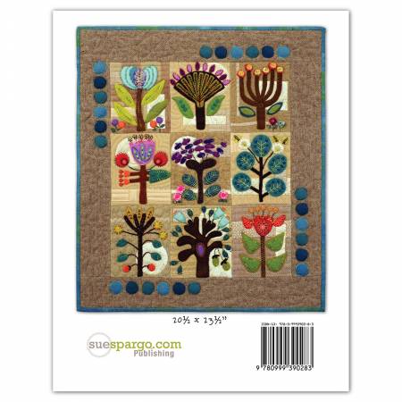 Finished Quilt Size: 20.5″ x 23.5″ Wool appliqué, layering, and embroidery quilt/wall hanging. Rooted is a continuation of Sue’s small studies, which will lead you on a journey through the wonderful world of trees. Become immersed in the foliage, branches, and blooms, from the five-petal, intense red-orange Flowering Quince to the tropical Golden Dewdrop, with its violet-blue flowers and golden berries. With Sue’s detailed instructions and guidance on basic background layering techniques, you can teach classes with confidence and ease. Sue provides countless tips and tricks throughout the pattern, which will increase sales of tools and notions. Easily demonstrate how to add textural background stitching and how to enhance each element with expertly selected embroidery stitches, bringing each block to life. Block of the Month friendly. Creative Stitching book (sold separately) is needed for embroidery stitch instruction.
