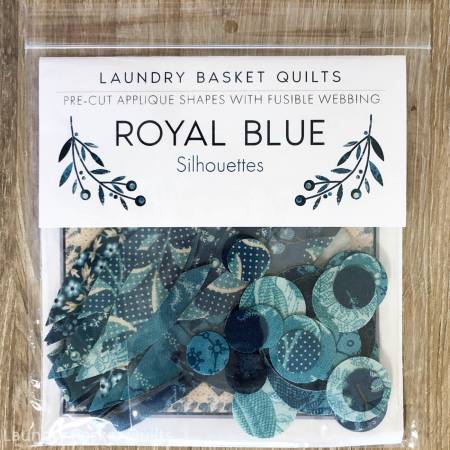 Laser cut fusible appliqué shapes using the Royal Blue fabric collection by Edyta Sitar of Laundry Basket Quilts. it contains 58 fabric shapes. Each individual shape is backed with light weight fusible webbing, perfect for any level quilter.