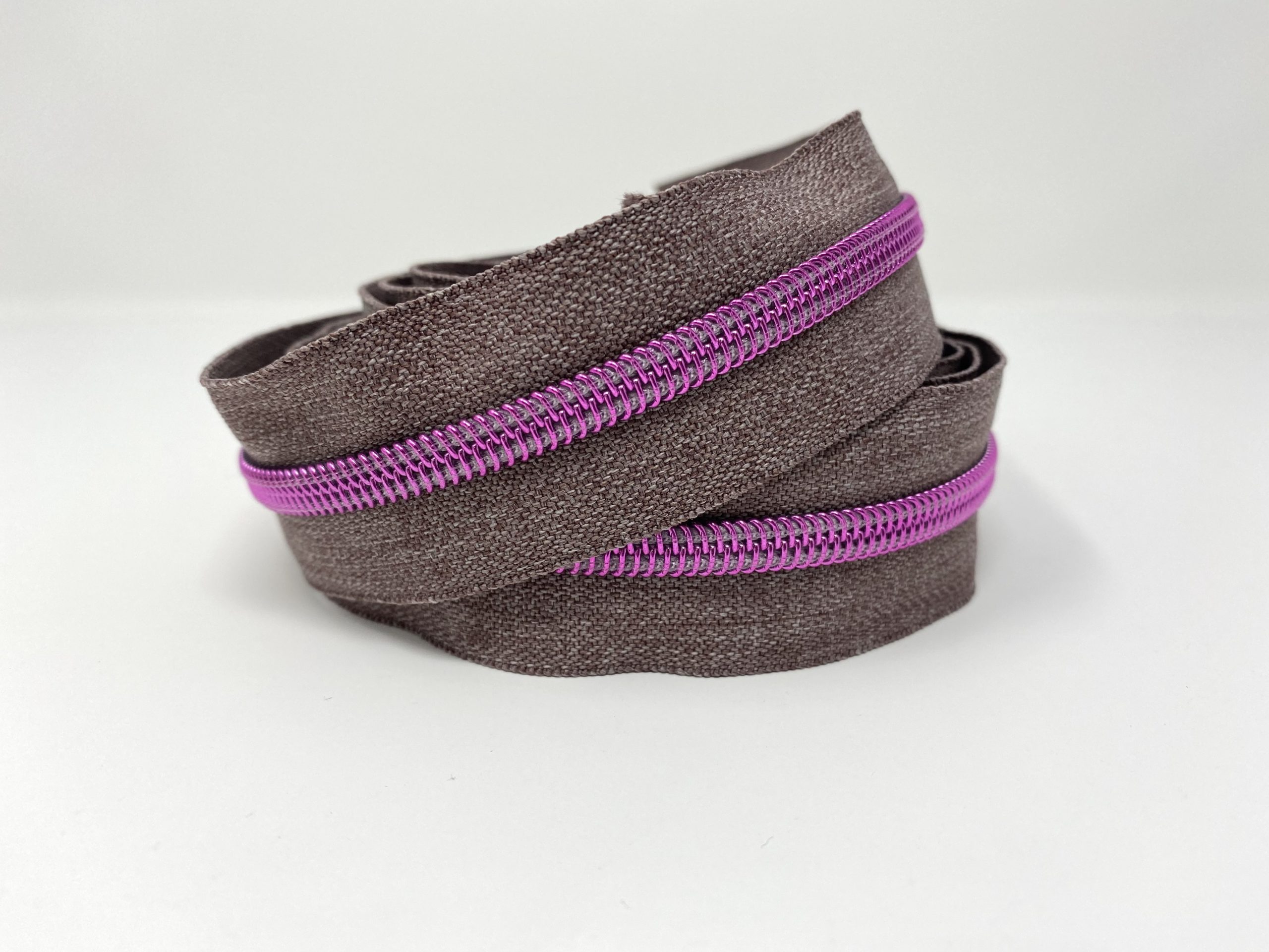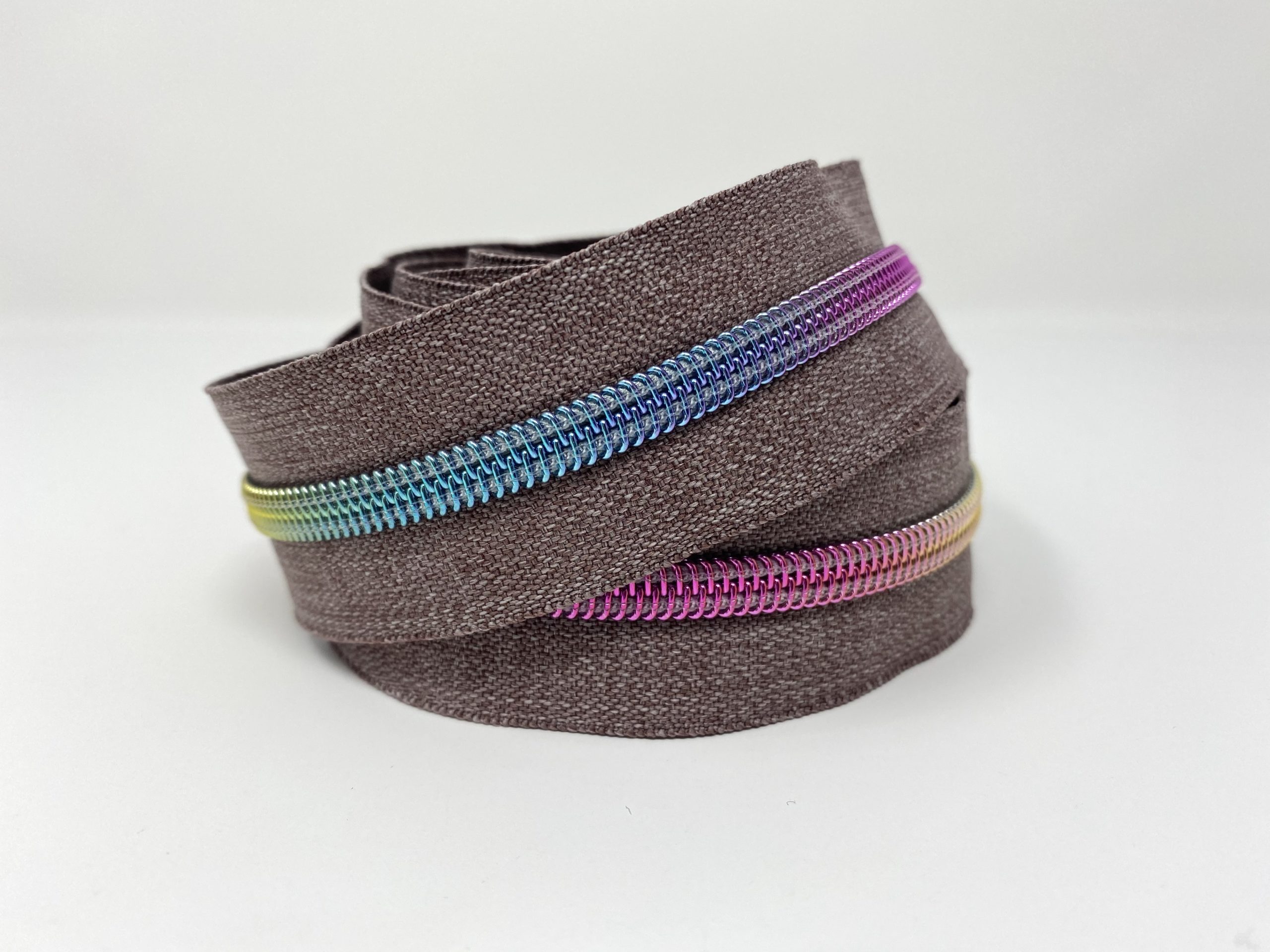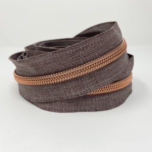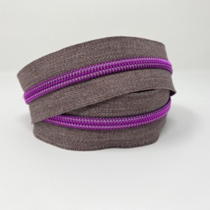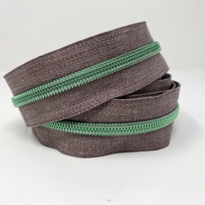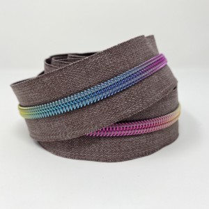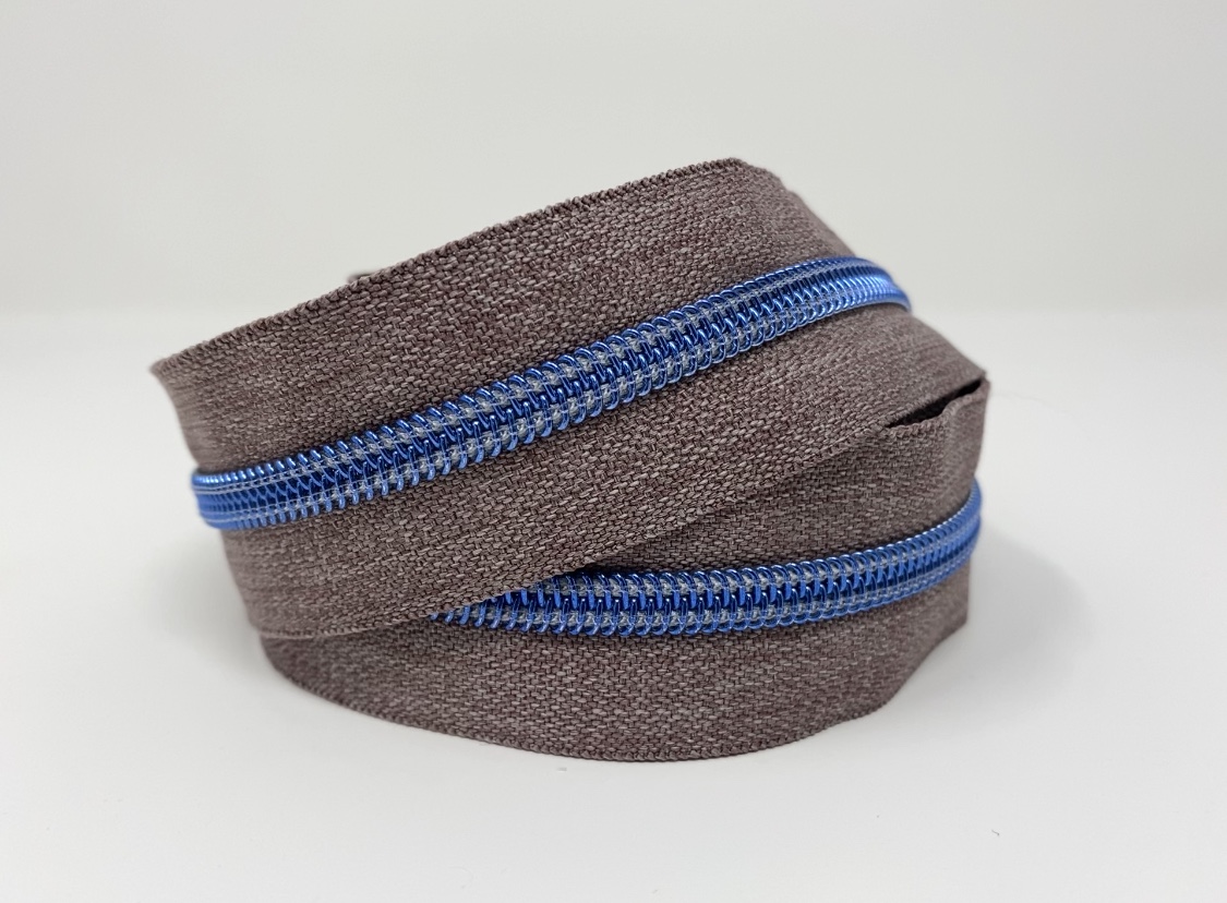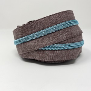 3 metres (118 inches) of size #5, nylon continuous zipper. Featuring Grey Denim Tape with 15 different colour choices for the teeth: