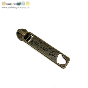 These Zip Sliders are made to be used with any of the #5 nylon coil zipper tape from Serial Bagmakers. The Made With Love style is available in the following colours: