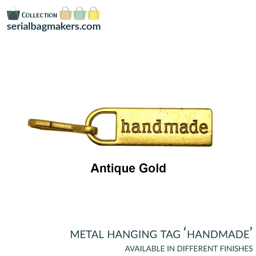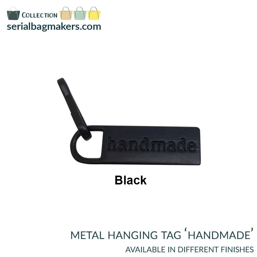 These hanging tags have a debossed “handmade” on both sides. Use them as zipper pulls or tags for any zipper as an eye-catching statement to your bag pockets. Pair with a metal bag label for a finished, professional look.