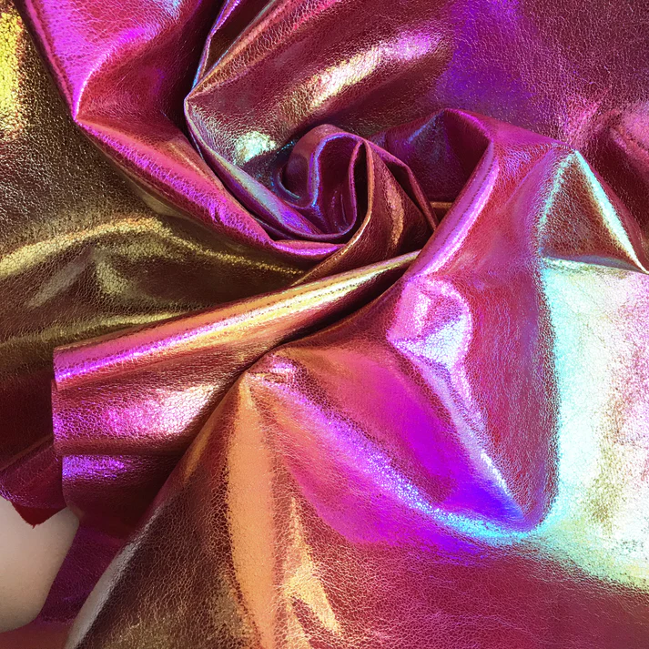 A luxuriously soft  faux leather in a metallic / crackle style finish, perfect for sewing. This ‘vinyl” is a soft fabric and has a brushed woven backing for easy sewing. It can be washed and dried on cool settings in your machine, so projects made with it can be easily cared for and last ages. Use a Universal needle size 80 (the normal needle used for most sewing). Easily sews with a normal sewing foot, walking foot, or a teflon foot. Use for bag making, embroidery in the hoop projects, crafts, and even garments that hold body.