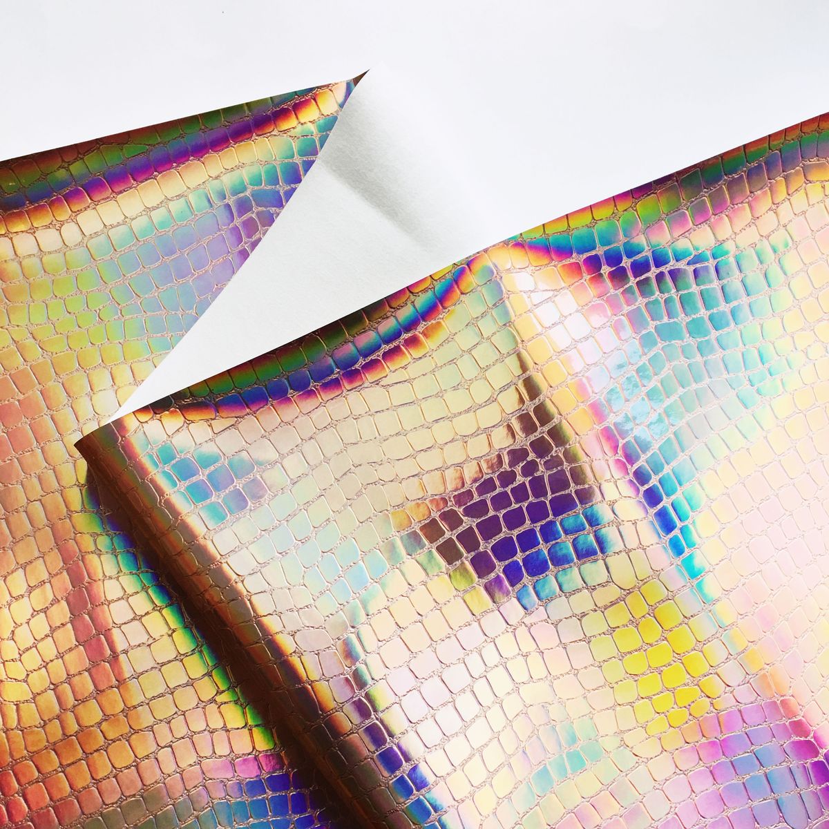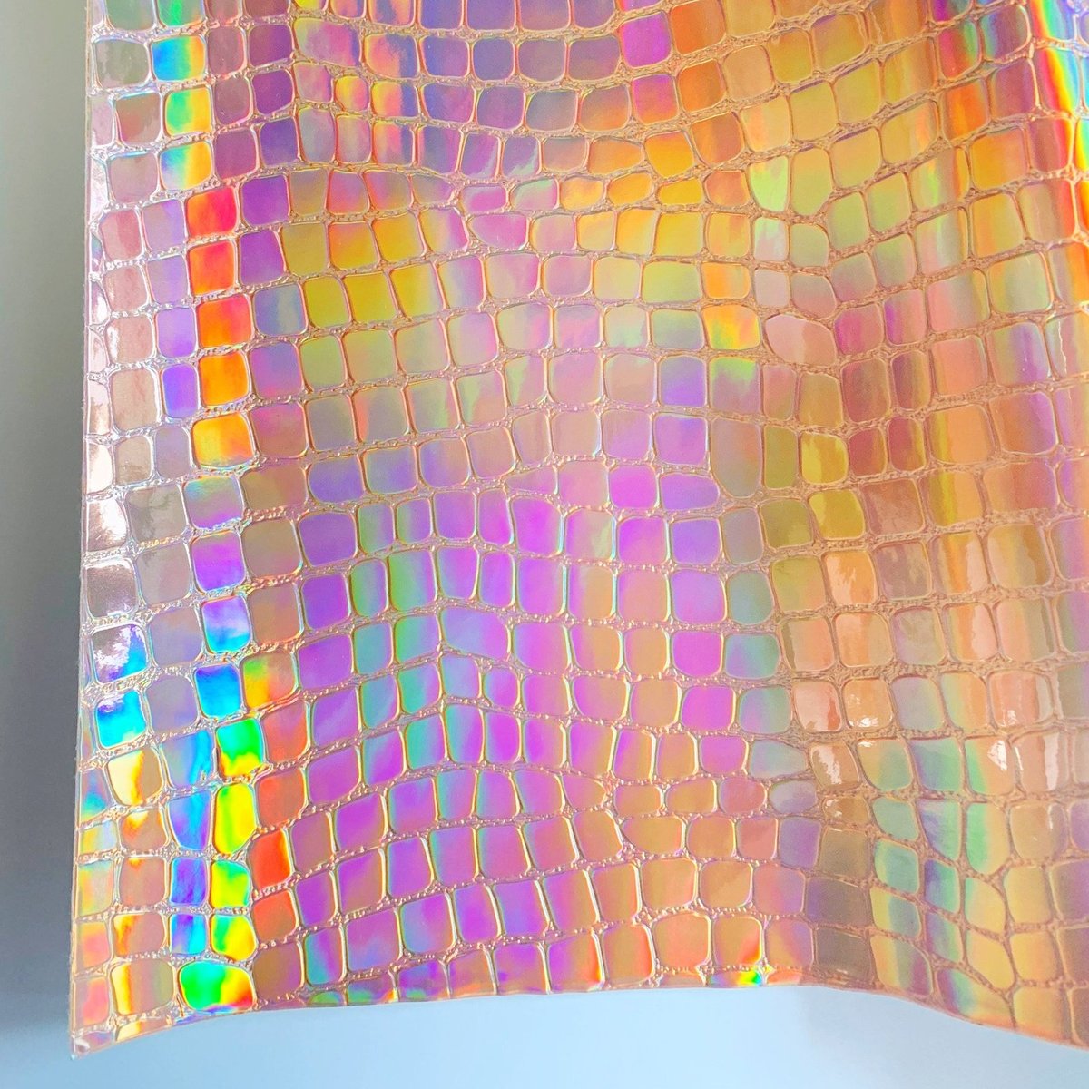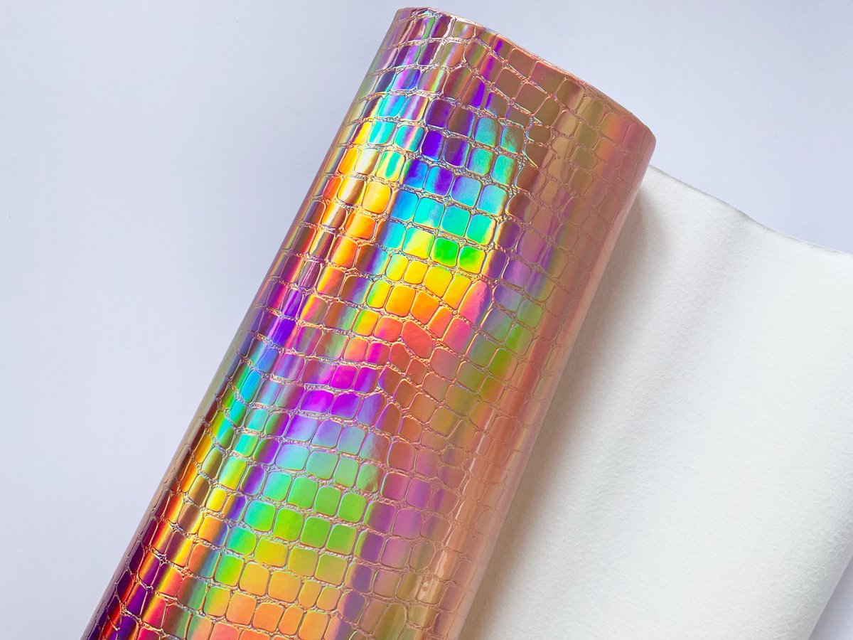 Thickness is 0.7mm with a felt/fabric backing making it VERY easy to sew. ALL colours are rainbow-iridescent when sunlight hits them. Precut rolls of 18″ x 54″.