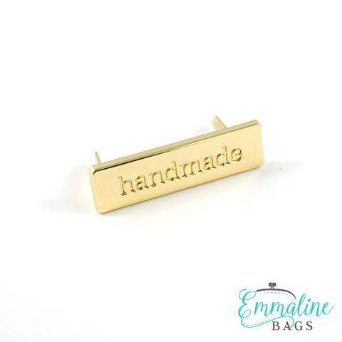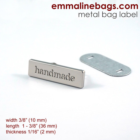 - “Handmade” metal bag label in your choice of Nickel, Gold, or Copper