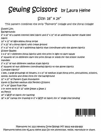Sewing Scissors Collage Pattern by Laura Heine. This is the perfect addition for your sewing room with these Sewing Scissors. This quilt is a mix between painterly and collage. A great way to learn both techniques and a stunning collage for your wall. This pattern includes step by step color instructions to complete this quilt. Finished size 18″x24″.