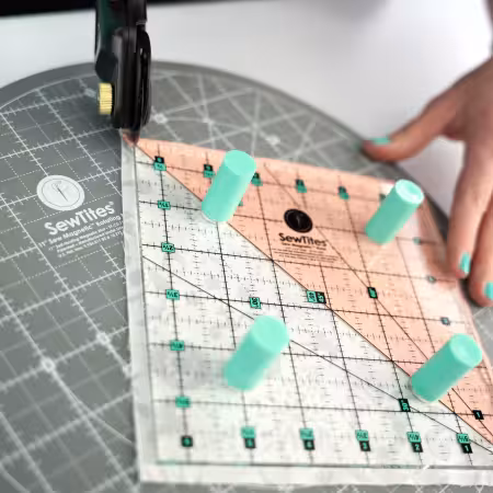 Use it with SewTites Boosters and the Sew Magnetic™ Ruler of your choice to secure your fabric and templates or pattern pieces while you cut and rotate your project.