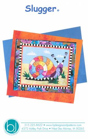 “Slugger” is a wall quilt of a whimsical snail . It is 33″ x 28″. It is fused and machine appliqued.