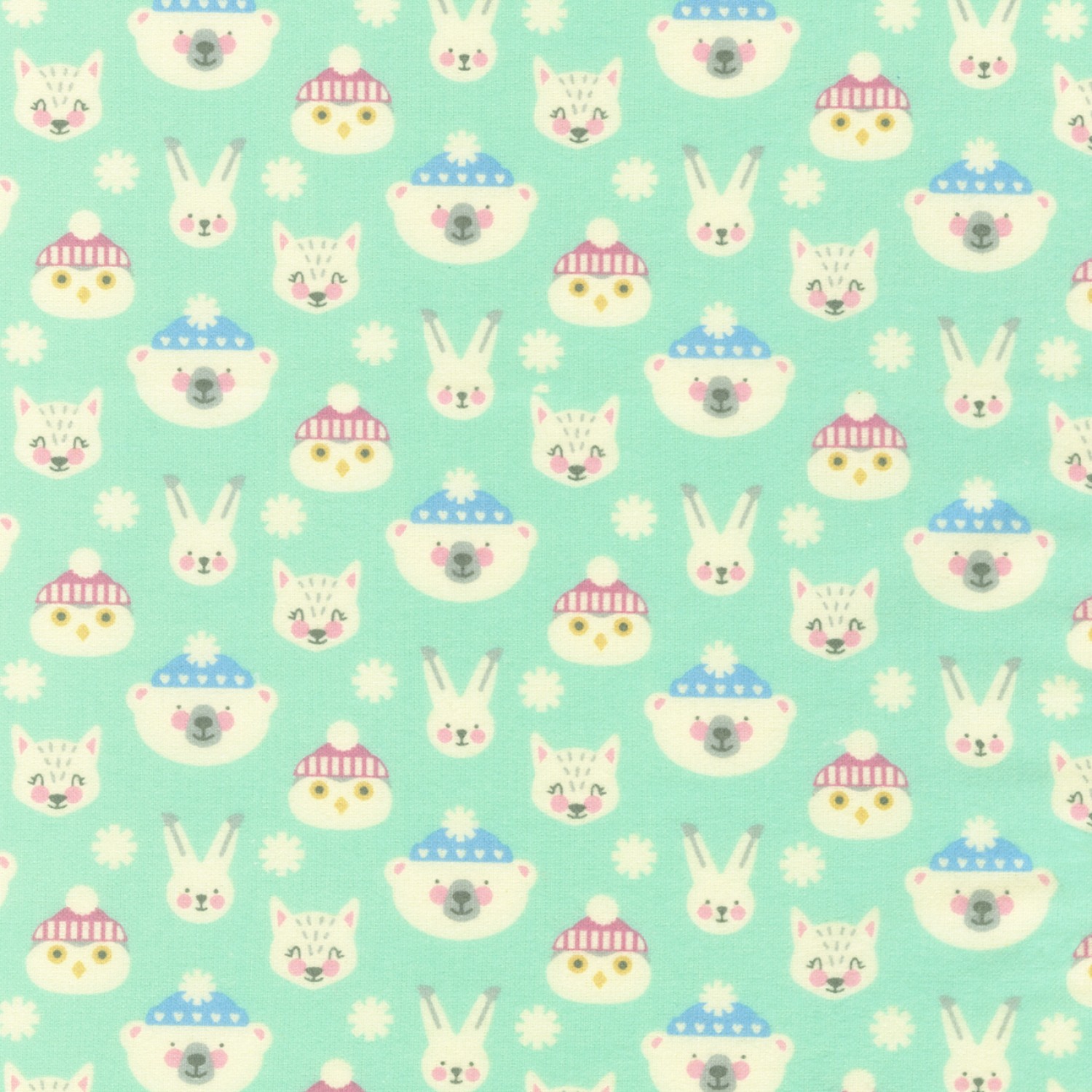Snow Snuggles Animals Mint Flannel