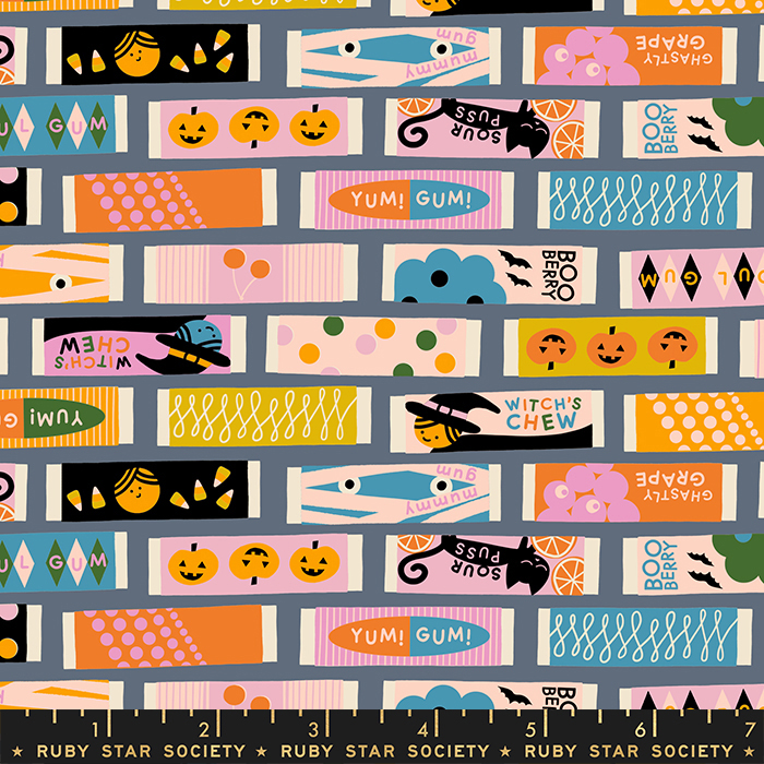 Spooky Darlings is a collaborative collection featuring some of Ruby Stars designer’s favourite past spooky prints along with some new ones. Bright oranges, purples, citrons and black are the familiar colours of the Halloween season; peaches, golds and teals round out the palette.