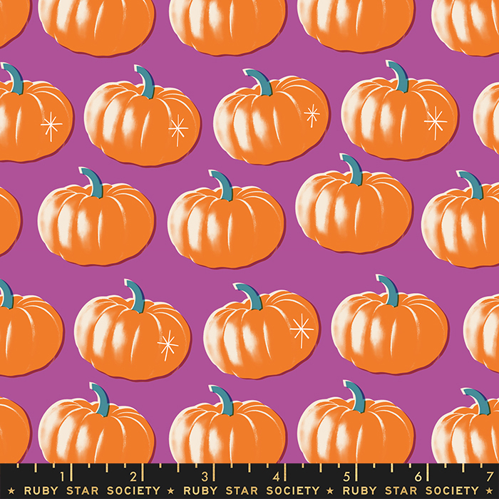 Spooky Darlings is a collaborative collection featuring some of Ruby Stars designer’s favourite past spooky prints along with some new ones. Bright oranges, purples, citrons and black are the familiar colours of the Halloween season; peaches, golds and teals round out the palette.