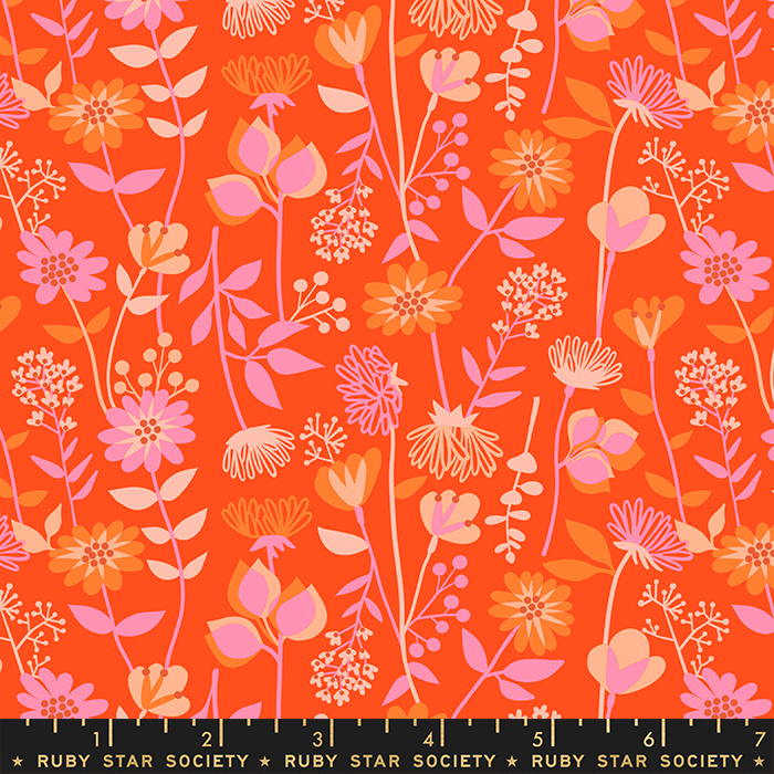 Continuing the exploration of florals from her previous collection Rise, Melody Miller goes even further in her latest group, Stay Gold. This collection has a full range of scales and colours from the lush large-scale florals of ‘Shimmer,’ to rich tonal ‘Meadow’ and ‘Sparkle’ prints, to several tiny supporting prints.  Also, three new colours have been added to Melody’s Spark palette to support the collection.