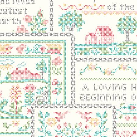 Stitch all the things with Lori Holt! She has a love affair with anything stitching related weather it’s sewing, applique, embroidering, or cross stitching. Several prints in her latest collection take a curtsey to all types of stitching related items that Lori loves as well as to her endearing love of vintage prints. Let her new Stitch collection inspire your next quilting creation!