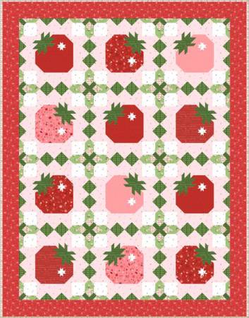 Fresh Strawberries designed on point in this optical illusion quilt! This traditionally pieced, confident beginner quilt is assembled on point with the feel of vertical blocks! The Strawberry Basket quilt finishes at 60” x 77”.