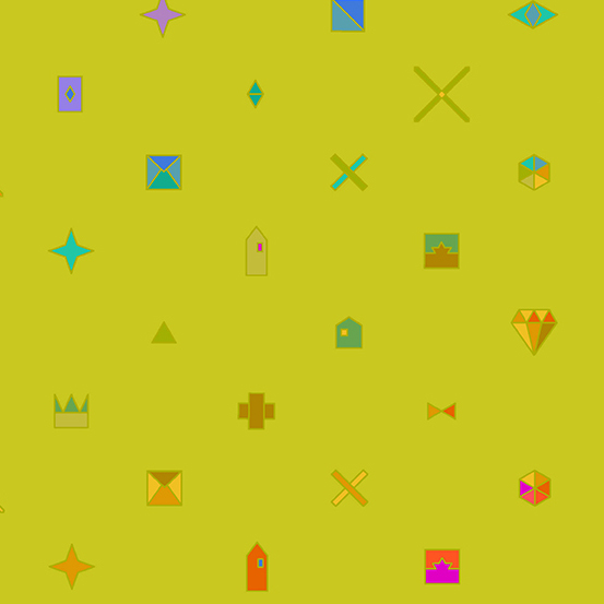 ‘Tuesday’, from Road Trip, makes another appearance in nine new colors. The tiny flowers and leaves will add some pizzazz to your quilt projects. ‘Crochet’ is also appearing a second time. Originally from the Handiwork collection, ‘Crochet’ is a graphic interpretation of Alison’s grandmother’s tablecloth and a celebration of family heirlooms and tradition. The nine new colors will provide many fun design opportunities. The third design, ‘Trinket’ is brand new and celebrates the Trinket quilt pattern. The motifs are sure to be fun to fussy cut for whatever project you like.