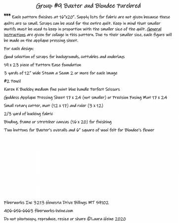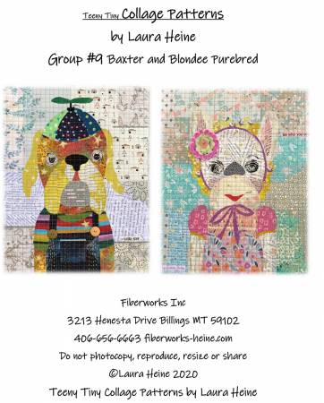 Teeny Tiny Collage Pattern Group # 9 Baxter and Blondee Purebred by Laura Heine. These two adorable dogs complete the family of the Purebreds. These are a fun size and can be finished with binding and hung on a wall or stretched on a canvas frame. Full, colour step by step instructions for both patterns are included.