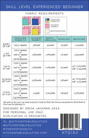 The Kristen Quilt Pattern is a versatile and fun project designed for experienced beginners and beyond. Whether you’re using charm squares, layer cakes, fat quarters, or scraps, this pattern helps you showcase your favourite fabrics beautifully. With instructions for five sizes—baby, lap, twin, queen, and king—it adapts to any quilting need. The Kristen Quilt easily transitions from a traditional look to a modern aesthetic, making it a perfect choice for a wide range of fabric styles. This pattern is sure to inspire creativity and make your next quilting project a joy! Sizes Baby Size – 38″ x 38″ Lap Size – 59″ x 66″ Twin Size – 73″ x 94″ Queen Size – 96″ x 110″ King Size – 110″ x 110″ Skill Level Experienced Beginner