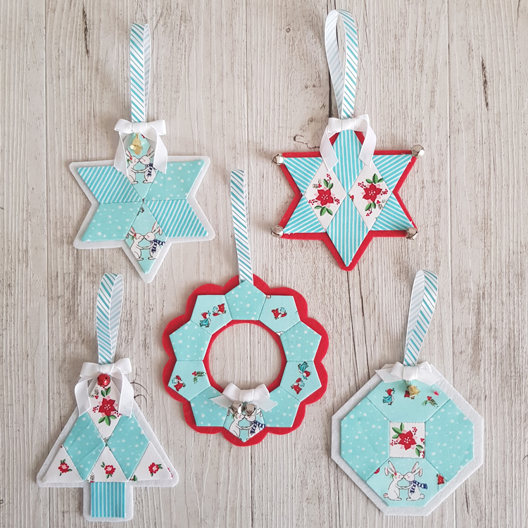 ‘Tis the Season is a set of six English Paper Pieced Christmas decorations that are super quick to stitch up for your own home or for a friend. Included in the pattern are a Wreath, Tree, two Stars, Bauble and a super cute Candy Cane. The pattern includes full sized templates and a free downloadable link which is also Scan N Cut friendly.