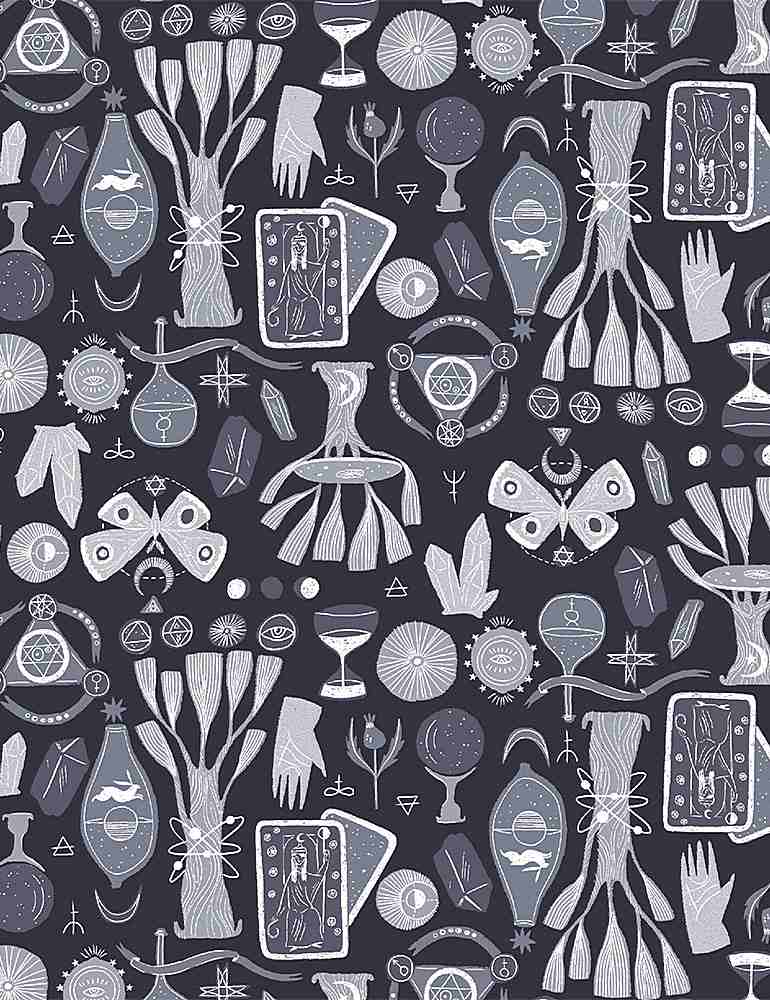 Designed by Rae Ritchie for Dear Stella, the Toil & Trouble collection invokes a spooky, edgy Halloween mood. Featuring muted colours and mysterious designs, this lightweight fabric is perfect for quilting, apparel, and home décor accents.