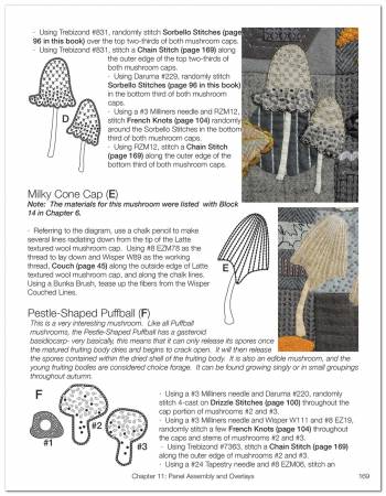 Finished Quilt Size: 36.5″ x 42.5″ Wool appliqué, layering and embroidery quilt/wall hanging. Mushrooms are fascinating organisms deeply ingrained in our subconscious, with their mycelium extending into folklore, medicine, and cuisine. The kingdom of fungi is vast and varied, with some spores being so small they aren’t visible under a microscope. The largest organism on Earth is a mushroom, whose mycelium spans over 2,200 acres in eastern Oregon. Truffle Duffel explores their diverse forms and vast textures by expertly layering hand dyed wools, velvets, and cotton fabrics. Extensive background appliqué and embroidery creates a natural woodland where surprises that lurk and shoot through the forest floor will suddenly appear through stitchery. Detailed instructions, clear pattern and stitch diagrams, and the opportunity to learn new techniques such as wool appliqué, layering, cotton appliqué, embroidery, dimensional embroidery, and texture creation make Truffle Duffel an ideal Block of the Month program. Creative Stitching book (sold separately) is required for embroidery stitch instruction.